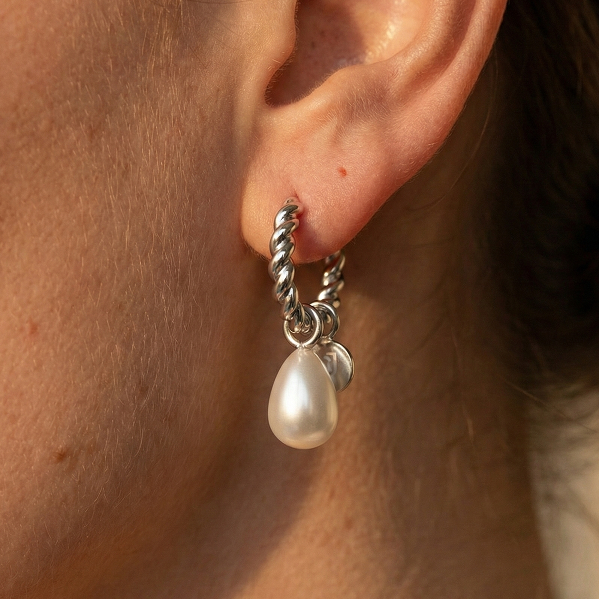 • Features a synthetic pearl drop, adding a classic, refined touch.