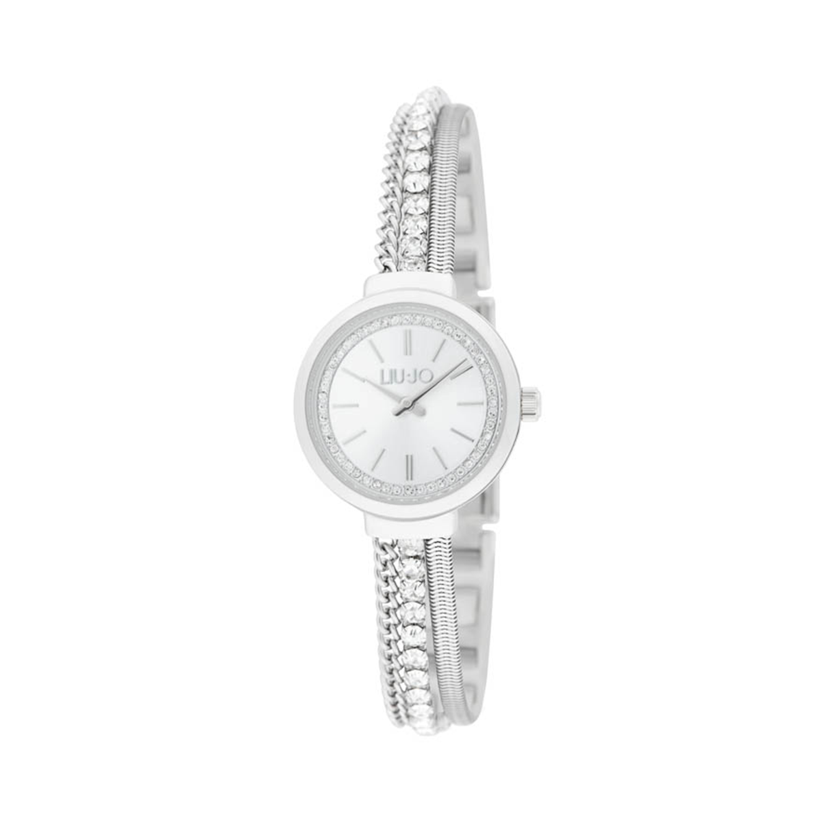 Discover the refined charm of the Liu Jo Chains Ensemble TLJ2726, a timepiece that doubles as jewelry with its graceful, fashion-forward design. The 30 mm silver‑tone stainless-steel case offers a clean and luminous face, while the distinctive multi‑chain bracelet — accented with glimmering crystals — brings a touch of glamour and sophistication.