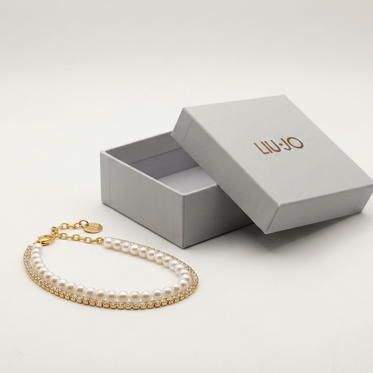 Elevate your wristwear with the Liu Jo LJ3027 double-layered bracelet — a sophisticated piece that blends elegance and modern design. Crafted from high-quality stainless steel with a warm gold-tone PVD finish, this bracelet features two delicate strands. The shorter strand is made up of soft synthetic white pearls, giving it a romantic and timeless appeal. The longer strand is a tennis-style chain, subtly graced with shimmering crystals that catch the light. At approximately 20 cm in length (with a lobster‑claw clasp), it offers a comfortable and secure fit. Lightweight yet striking, this bracelet adds a refined touch to both everyday looks and special occasions.