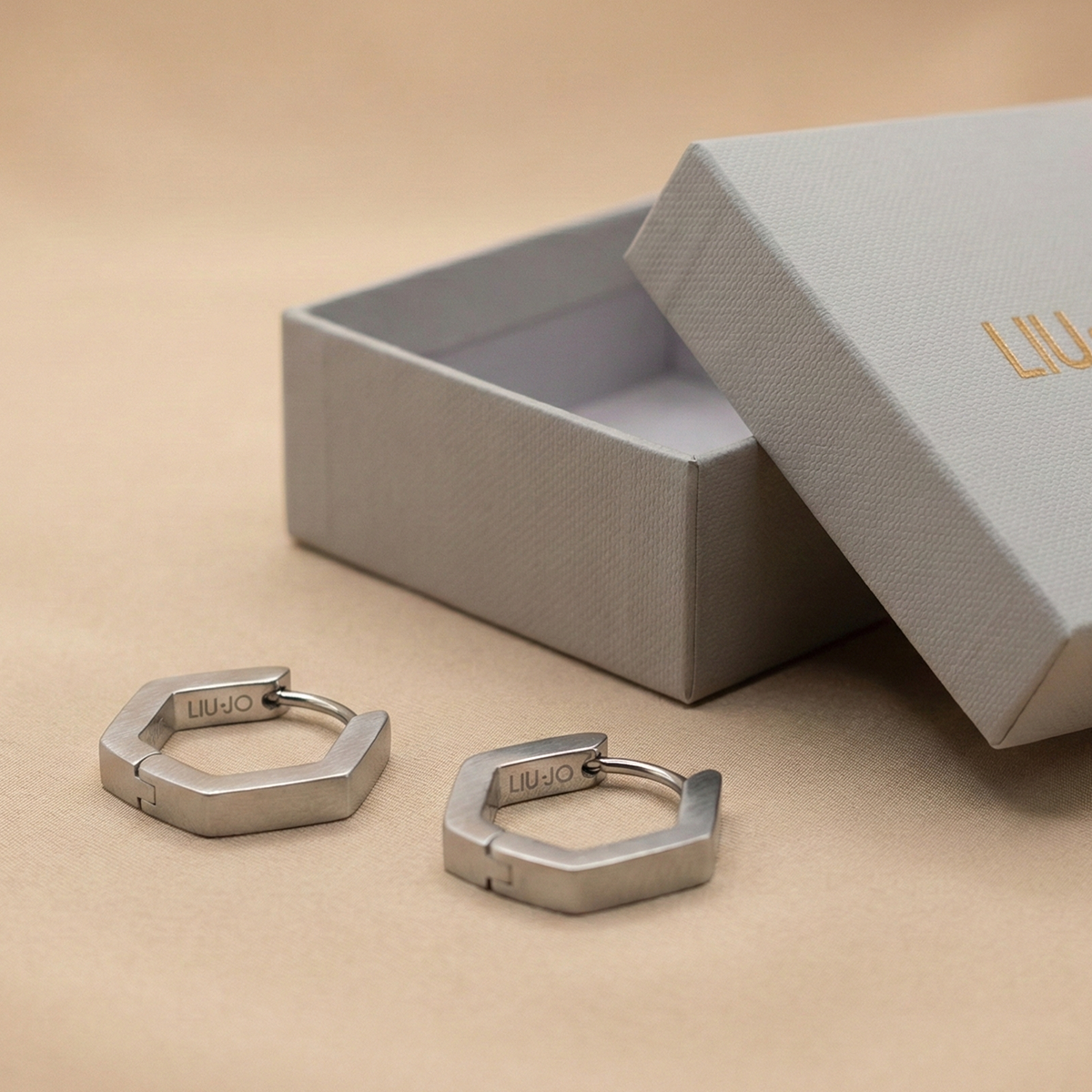 Elevate your everyday look with these Liu Jo LJ3002 Echo Silver Earrings. Crafted in stainless steel, they feature a clean, polished silver-tone finish that catches light beautifully. The design is compact — with a length of about 1.2 cm — making them a subtle yet sophisticated choice for daily wear. Their geometric hexagon-inspired form adds a modern, structured twist to classic hoops. Lightweight and refined, these earrings can easily transition from work to evening with elegance.