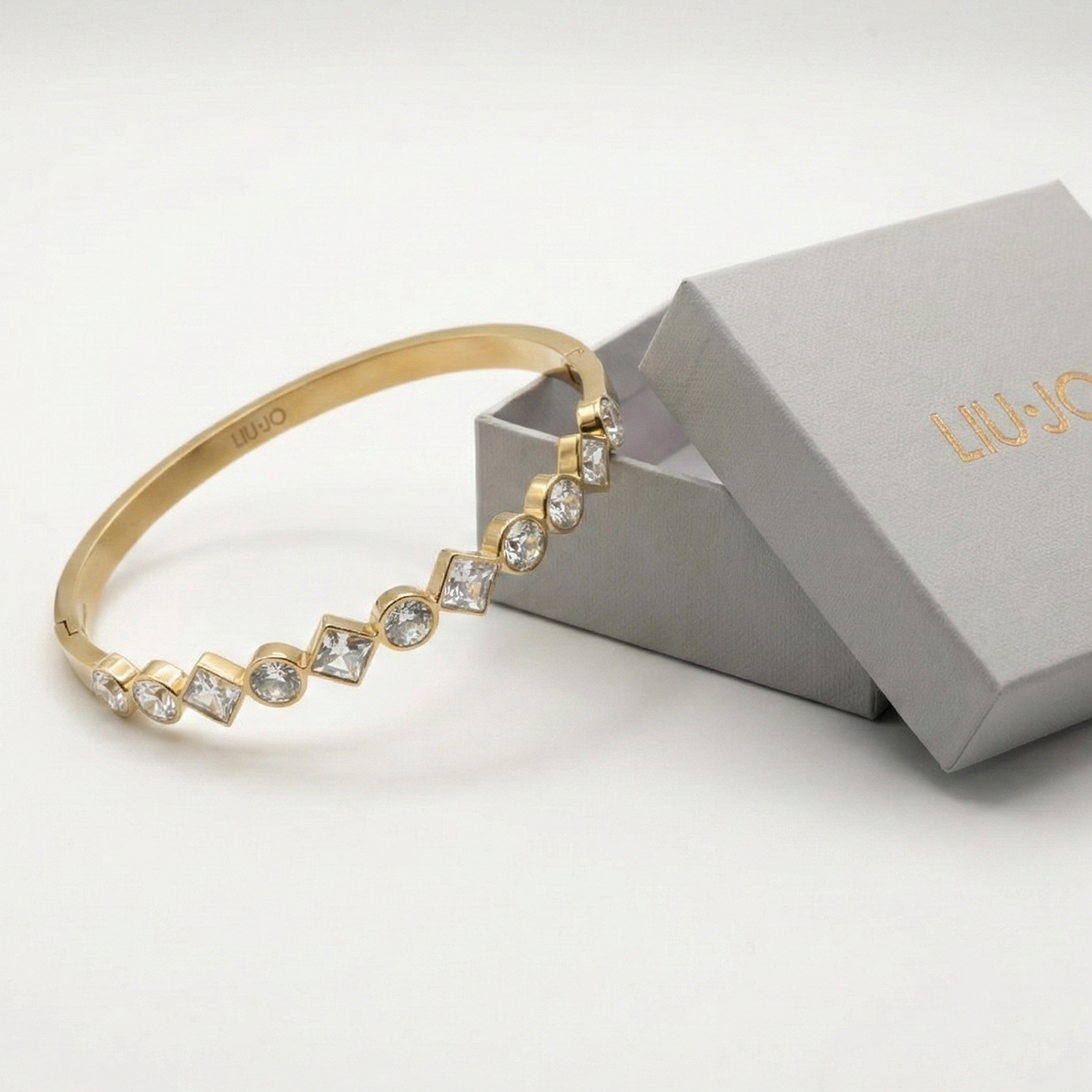 Elevate your wristwear with the Liu Jo LJ3037 bangle — a sleek, modern piece crafted from polished stainless steel. The rigid, semi‑bangle design offers a clean and structured silhouette, while the smooth gold tone exudes timeless sophistication. Set with sparkling crystal accents, this bracelet catches the light beautifully without being overly flashy. With a diameter of 65 mm, it slips on easily and sits comfortably on the wrist. Lightweight yet refined, it’s perfect for both everyday wear and more polished looks.